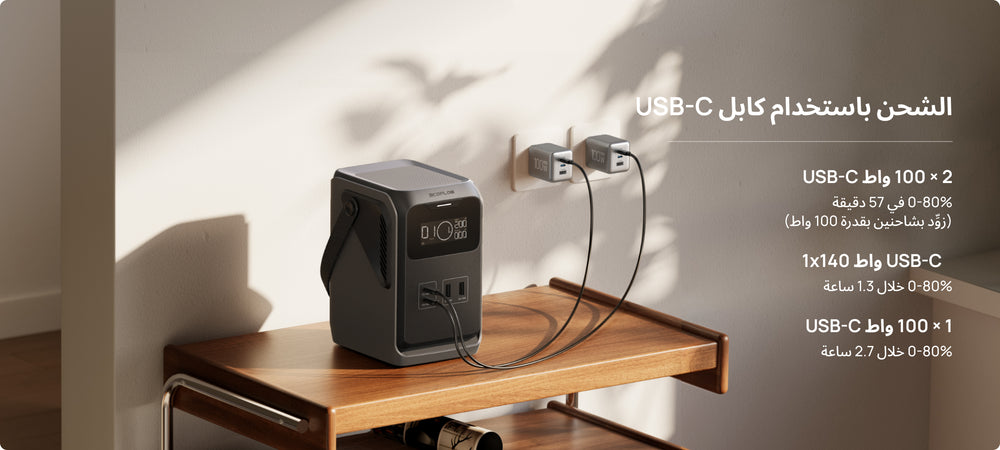 اشحن عبر منفذ USB-C بقدرة 140 واط وشحن الطاقة الخارجية في أي وقت ومكان مع TRAIL.