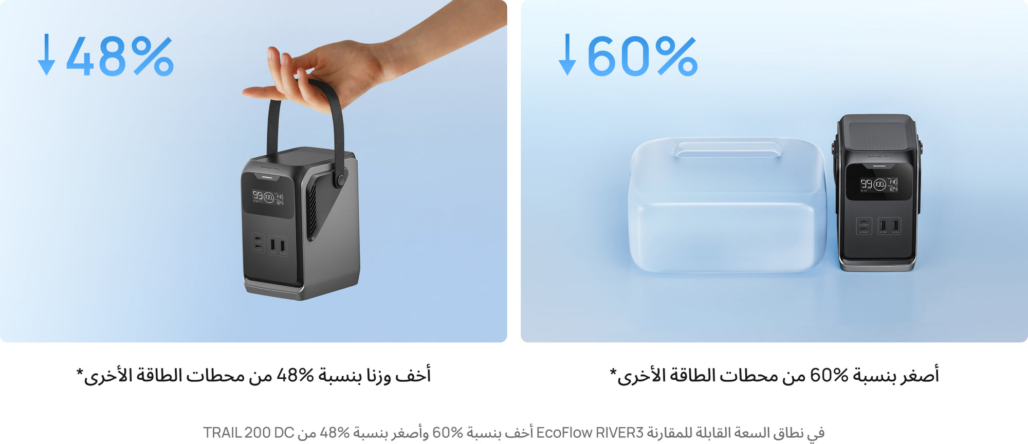 بسعة 192 واط ساعة (60,000 مللي أمبير ساعة) — ما يعادل 6 شاحنات متنقلة في جهاز واحد — تزود TRAIL 200 DC جميع أجهزة أصدقائك بالطاقة بكل سلاسة.