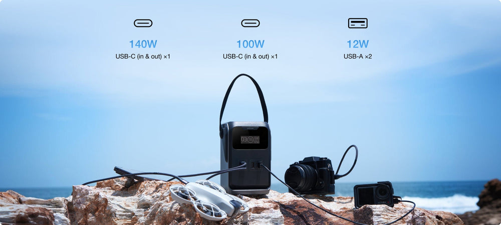 توفر طاقة التيار المستمر النقية خرجا إجماليا يبلغ 220 واط (140 واط كحد أقصى لمنفذ واحد) - وهو ما يكفي لـ %90 من أجهزة الهواء الطلق الأساسية. مثالي لجميع احتياجاتك الخفيفة من الطاقة أثناء التخييم.